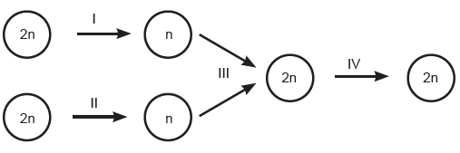 A) I ve II üreme ana hücrelerinde oluşur. B) III ve IV. olaylar sonucunda oluşan hücreler aynı kalıtsal yapıya sahiptir. C) I, II ve III. olaylar kalıtsal çeşitliliğe neden olur. D) Homolog kromozomların ayrılması II ve III. olaylar sırasında gerçekleşir. E) IV. olay mitoz bölünmedir.